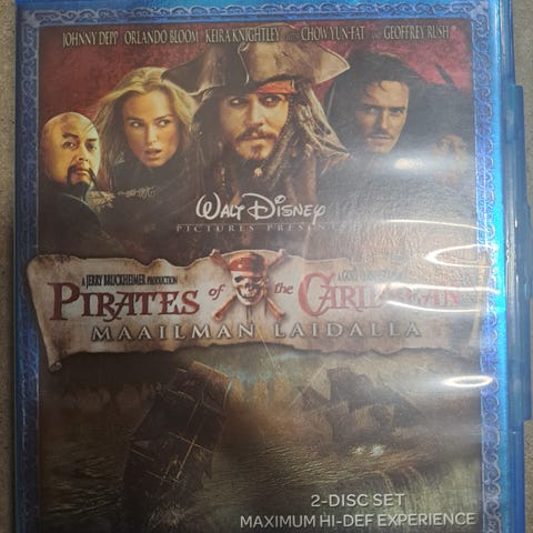 Disney Pirates of the Caribbean Vierailla Vesillä Blu-ray. Elokuva seuraa kapteeni Jack Sparrow'n seikkailuja merirosvojen maailmassa. Mukana on bonusmateriaalia, kuten kulissien takaisia otoksia ja poistettuja kohtauksia. Kieli: englanti, tekstitys: suomi.