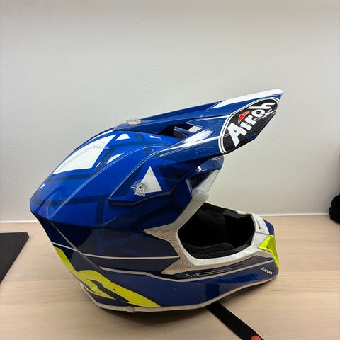 Tästä myyntiin lattialla levännyt laatumerkki Airohin mopokypärä. Käytetty on ja nyt jäänyt itselle turhaksi. Vähän käytön jälkiä näkyy, kuten pintanaarmuja.