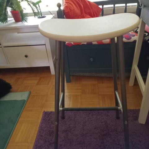 Ikean jakkara, harmaa päällinen. Päälinen pestävä. Korkeus 45cm. Koiratalous