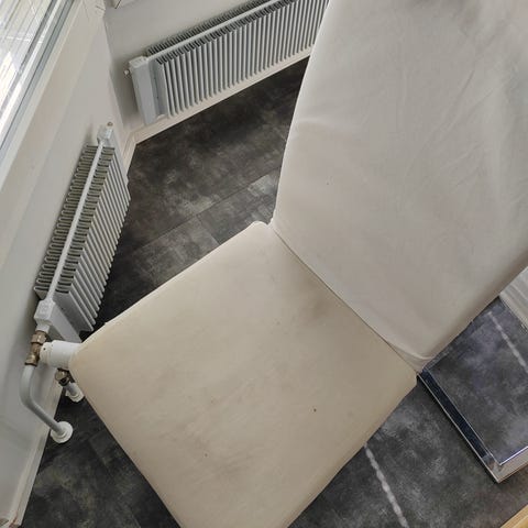 Istuin- ja selkätyynyssä tahroja ja värjäytymiä, eivät irtoa.