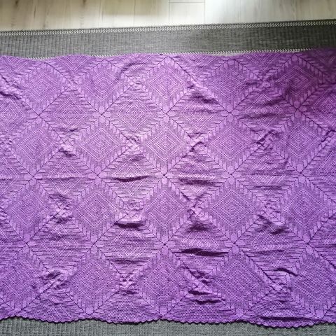 Pinkki/vaaleanpunainen torkkupeitto kalalangasta.
