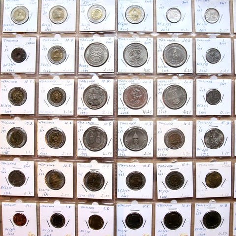 Thaimaan batheja vanhalla kuninkaan kuvalla