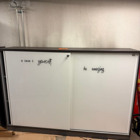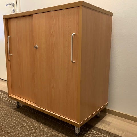 Käytön jälkiä löytyy hieman, mutta yleisilme siisti ja rakenteeltaan tukeva. Sopii esimerkiksi eteiseen, työhuoneeseen tai verstaalle pientavaran säilytykseen.