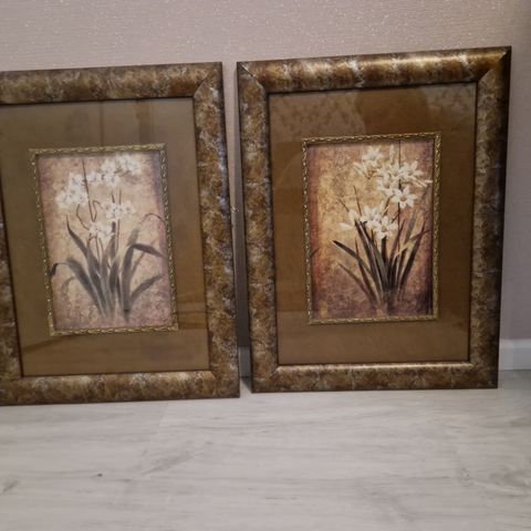 Myydään 2 kpl kehyksiä, joissa on kukka-aiheinen kuva. Kuvan saa otettua pois ja käytettyä kehystä muuhun kuvaan.