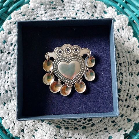 Hyvässä kunnossa oleva Kalevala Koru Salt Sydän rintakoru