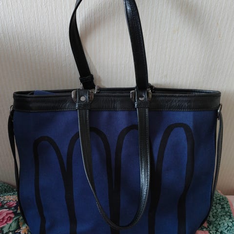 Vähänkäytetty sininen Marimekko Mansikka laukku.