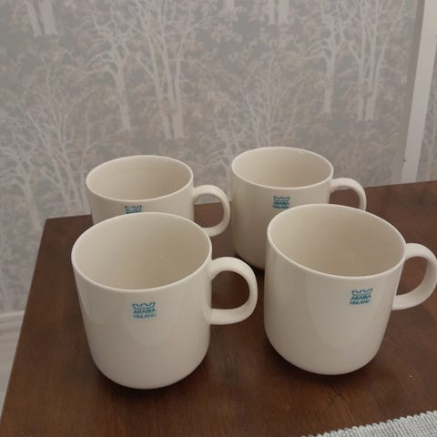 Kuvienmukainen Ketoneilikka Arctika muki asetteineen suunnitelija Heikki Orvola koristeen suunnittelu Katriina Viljamaa -Rissanen valmistusvuodet 1992-1999 .