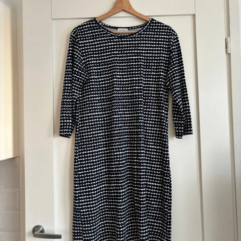 Ihastuttava uniikki ompelijan Marimekon Räsymatto -kankaasta ompelema uusi käyttämätön mekko.