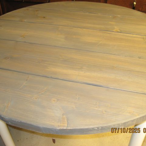 paksuus 4,5 cm teräs-putkijaloilla. Pöydän halkaisija 130 cm tehdää myös muita kokoja ja värejä. Yhteydenotto: Puhelin/sähköposti. kiitos etukätaan yhteydenotosta.