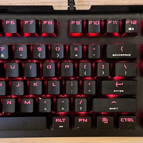 Näppäinhatut vaihdettu – voi halutessaan helposti vaihtaa omannäköisiksi muutamalla eurolla. Kytkimet ovat laadukkaat Cherry RED MXt, joissa on miellyttävä kirjoitustuntuma ja ääni. Ne ovat myös erittäin nopeat pelaamiseen ja vasteaika painallukselle on todella herkkä.