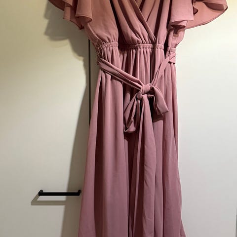 Siistissä kunnossa oleva juhlamekko, jossa takaa pidempi helma.