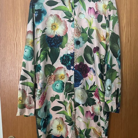SS16 malliston upea Uhanan mekko v-kaulanaukolla. Silkki/puuvillasekoitetta. Käytetty säästellen. Materiaali ei jousta. Mmm.