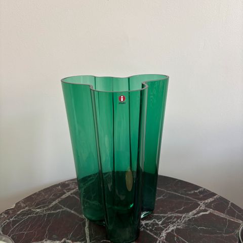 Myydään Smaragdinvihreä 95 mm korkea Aalto maljakko. Tätä väriä on tehty tässä koossa vain yritykselle. Pohjassa signeerauksen (Alvar Aalto Iittala) lisäksi myös Bonava teksti.
