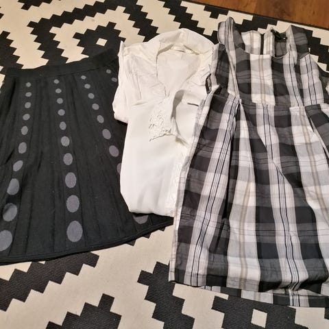 Hippihenkisiä siistejä ja ehjiä vaatteita m koossa. Viimeisistä kuvista voit valita kaupan päälle laukkuja ja huiveja.