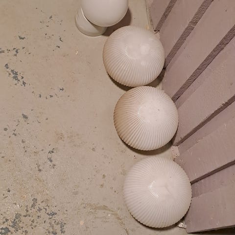 Kuvan mukaisia lasikupuja tai valaisimia.