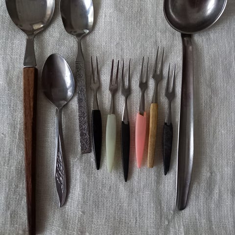 Myydään wanhoja mutta hyväkuntoisia ruokailuvälineitä. Valmistaja Sorsakoski.