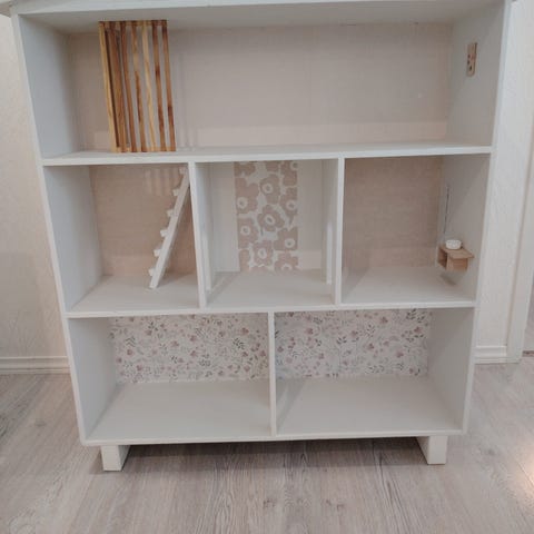 Myydään käsin tehty nukkekoti. Kalusteet tulee mukana, ei nukkeja. Maalattu itse jälkikäteen. Hyvässä kunnossa.