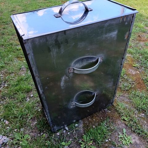 Myydään paksummasta rosterista itsetehty savustuslaatikko, korkeus 15 cm, leveys 20 cm ja pituus 55 cm. Sopii hyvin myös avotulella käytettäväksi.