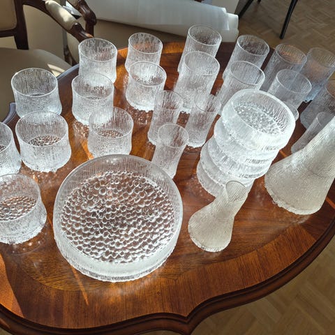 Sarjan astiat on valmistettu erityisellä jäälasitekniikalla, jota itse Tapio Wirkkala oli mukana kehittämässä.