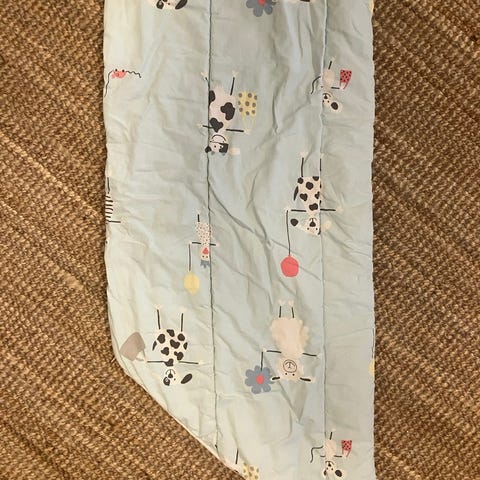 Myydään itsetehty lämpöpussukka vauvalle. Jalka-osassa fleeseä sisällä, aukko turvavyölle, joten käy turvaistimeen kätevästi. Olkapää jalkaosaan 62cm, leveys 37 cm. Kulkeutuu.