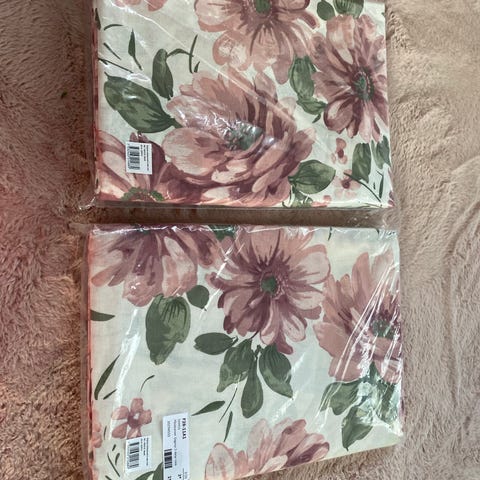 Pussilakanoissa ( 2 kpl yhden hengen) luonnonvalkoisella pohjalla keltasävyisiä ruusunnuppuja, neljä tyynyliinaa ja kaksi luonnonvalkoista aluslakanaa. Kesäkotiin tai mökille. Kaikki puuvillaa.