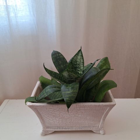 Anopinhammas purkissa. Kasvin korkeus mullan yläpuolella pisimmillään n. 8-9 cm. Vanhasta emokasvista otettu poikanen.