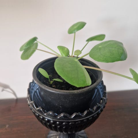 Aluslautanen ei tule mukana, vain kasvi ja purkki.