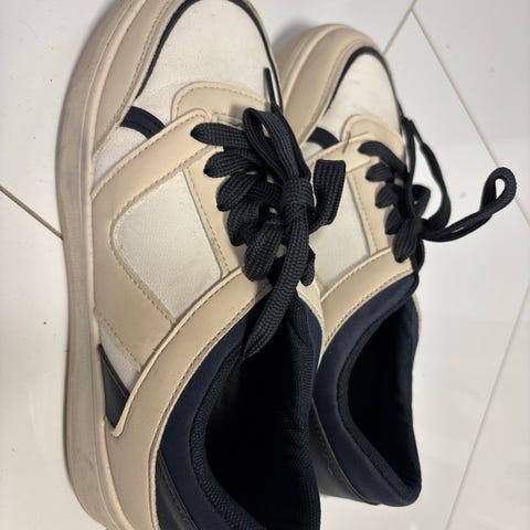 Hyväkuntoiset lenkkarit. Valkoiset osat ja nauhat tummuneet, muuten siistit ja ehjät.
