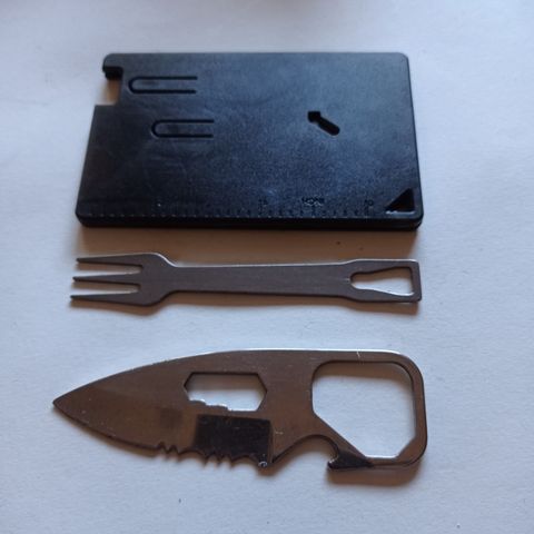 Näppäränkokoinen ruostumattomasta teräksestä valmistettu raha/korttiklipsi, jossa perus työkalut mukana. Tästä rahaklipsistä löytyy niin risti- kuin talttapääruuvimeisselit, pullon- ja tölkinavaaja sekä pakettileikkuri / leikkuukoukku.