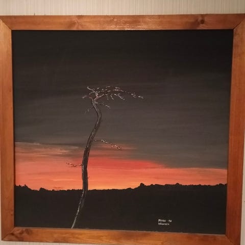 112x69 cm Taulu esittää tulvivaa maisemamaa