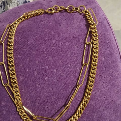 Ketju kaulakoru, jossa on neliönmuotoiset linkit. Ketjun pituus on mitattavissa kuvista, ja se on valmistettu kiiltävästä materiaalista. Sopii käytettäväksi erilaisiin tilaisuuksiin.