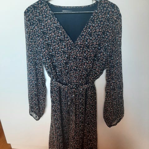 👗Only pitkä musta/kukallinen mekko L. Mekkoa on hyvin vähän pidetty. Vyötäröllä ja hihansuissa kuminauha. Helmassa röyhelö.