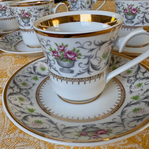 Vintage kahvikupit kultauksella 6 kpl