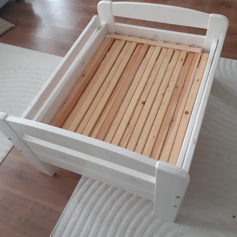 Lastensänky, massiivipuuta.