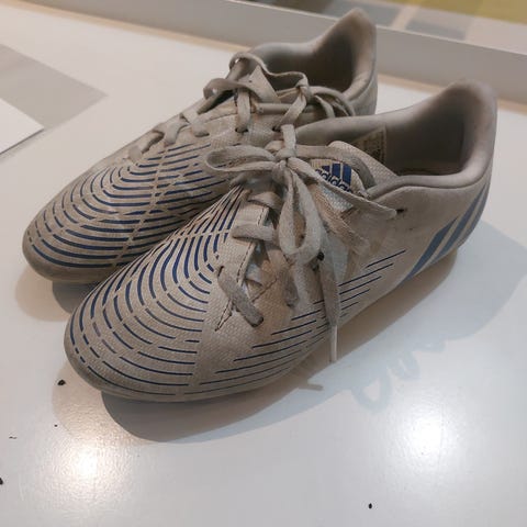 Sininen, polyesteria. Koulun sisäliikunnassa satunnaisesti käytetty, minusta moitteeton kunto.