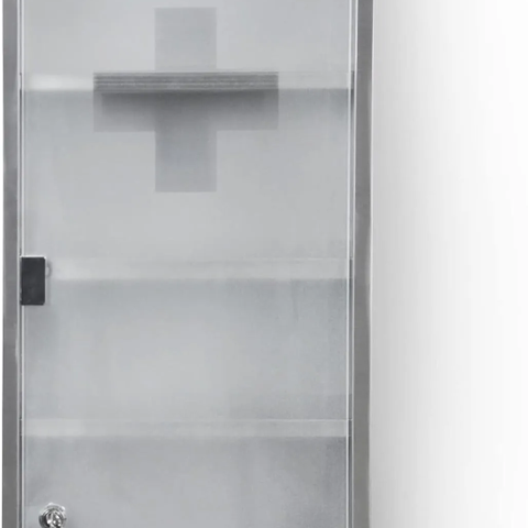 Valkoinen melamiini,lukittava, 2 hyllyä ja kynäkotelo.