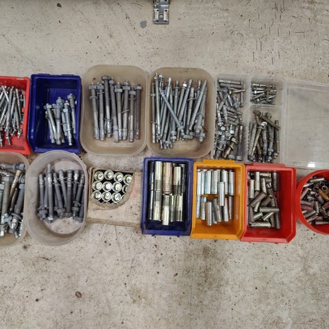 Paljon erikokoisia kiila-ankkureita. On kuuma-/sähkösinkittyjä. Tule paikanpäälle katsomaan ja tee tarjous kaikista. Voidaan myydä myös pienemmissä erissä mutta etu sijalla se joka ostaisi kaikki.