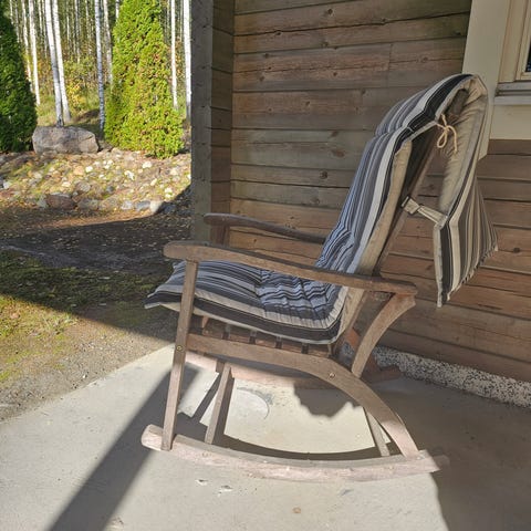 Puinen taittuva tuoli, jossa on paneelipintainen istuin ja selkänoja. Tuolin rakenne mahdollistaa sen helpon kokoamisen ja taittamisen säilytystä varten. Sopii sisä- ja ulkokäyttöön.