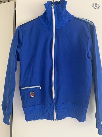 Todennäköisesti Äänekosken Huiman. Käytönjälkiä ja tahroja löytyy, ei ole yritetty puhdistaa. Vetoketjut toimii. Kokomerkintä 150 mutta näyttää tosi pieneltä. Nouto tai postitus (+8,90e).