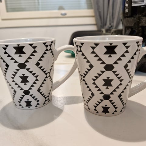 Iso kukkakuvioinen muki ja asetti samaa sarjaa