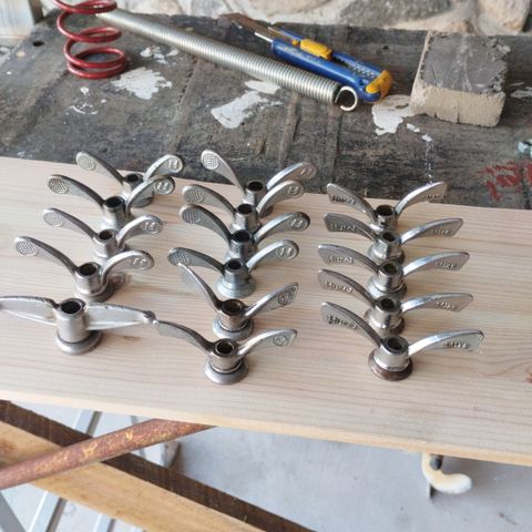 Ylempi Sachs Torpedo napa-akseli, alempi joku vintage pyörän kampiakseli. Ylempi 12€, alempi 20€