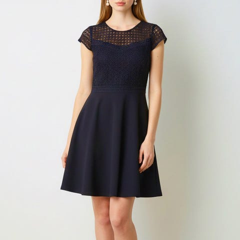 Haku: sininen tummansininen laivastonsininen pitsi pitsinen pitsimekko lace lacedress a-linjainen a-linja skaterdress skater dress hulmuavahelmainen levenevä vyötärö super dry laadukas juhlamekko minimekko bilemekko blue short dress cocktailmekko