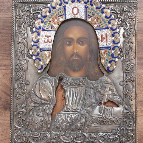 Ikoni Pyhä Sergei v.1878, Kazanista Venäjältä koko 4x5cm, hopeaa, ortodoksipappien aikanaan kaulassaan kantama, tosi hyväkuntoinen h.600e