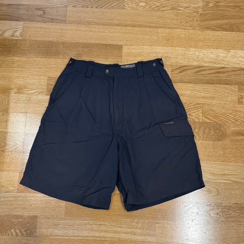 Todella siistit vaellusshortsit joissa irroitettava ja säädettävä vyö, vetoketjutasku takana ja edessä taskut. Väri musta, ylivaloitus kuvien selkeyden takia. Ei moitteita, vyötärö 39 ja haara-lahje 14cm. Reilu mitoitus