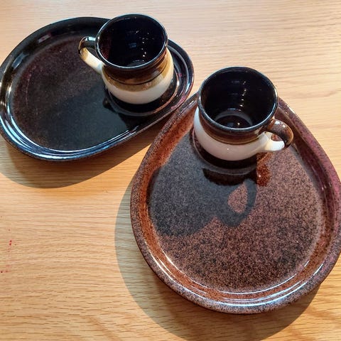 Lähes käyttämätön ja hyväkuntoinen Kermansaven aamiaissetti.