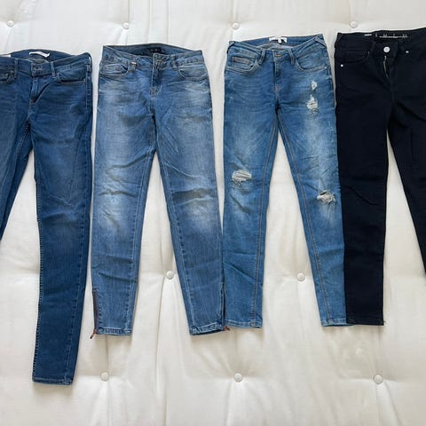 Ei oo monasti käytetty. En tuu itse enää koskaan käyttää, ni joutaapi etiäpäin. Joustavaa farkkukangasta! Kaikki tarkastettu ja täysin ehjät ja hyväkuntoiset.