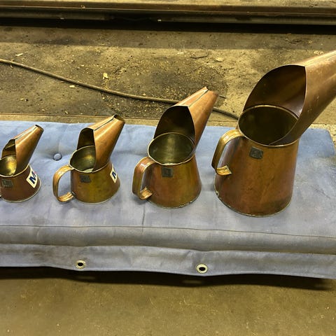 Tuollaisia öljykannuja joihin mahtuu rasvaa, öljyä tai vaseliiniä jonkun verran. Mukana " korkki" , ettei suttaa. Kun sormella painaa reunasta, kuuluu plop. Onse venäläinen osannut joskus suunnitella hienon taide- esineen. H. 8 kpl + toridiili kulut. Saat itse määritellä tilauksessa kpl määrän.