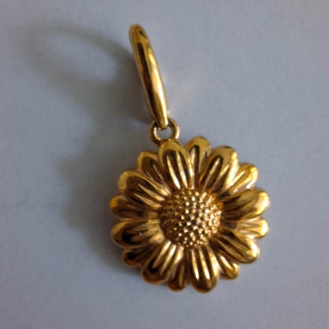 Aidot järeät ja kolmiuloitteiset uberlaadukkaat Cabouchon kultapäällysteinen auringonkukka-rintaneula. Tähän löytyy korvakorut ja pikalukollinen riipus myös.