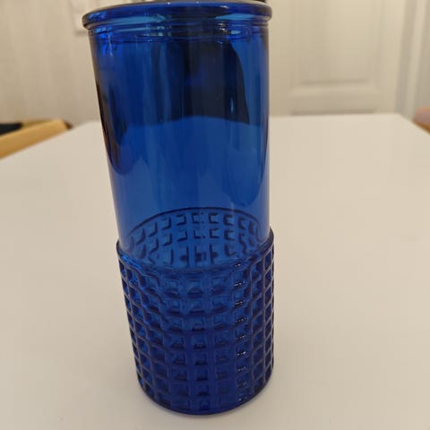 Kumelan lasitehtaan valmistama ja Armando Jacobinon suunnittelema maljakko, korkeus 29 cm ja paksua lasia. Virheetön kunto eikä kalkkeumaa. Kaupan päälle saa halutessaan kakkoslaatuisen 17 cm korkean, jossa muutama riksu. Vain noutona myyn.