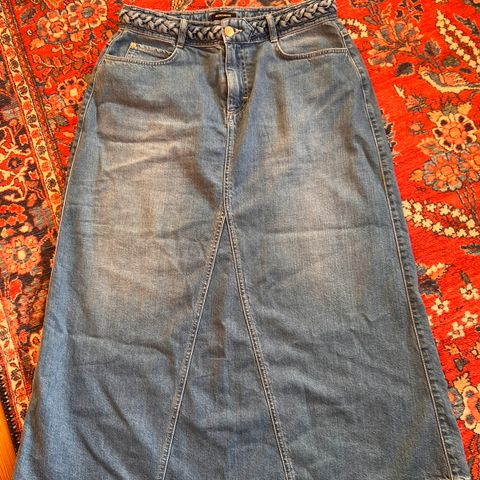 Myyntiin uudenveroinen maxi-koon farkkuhame koossa 30. Vastaa 40/42 kokoa. Vaalea väriltään. Halkio edessä.